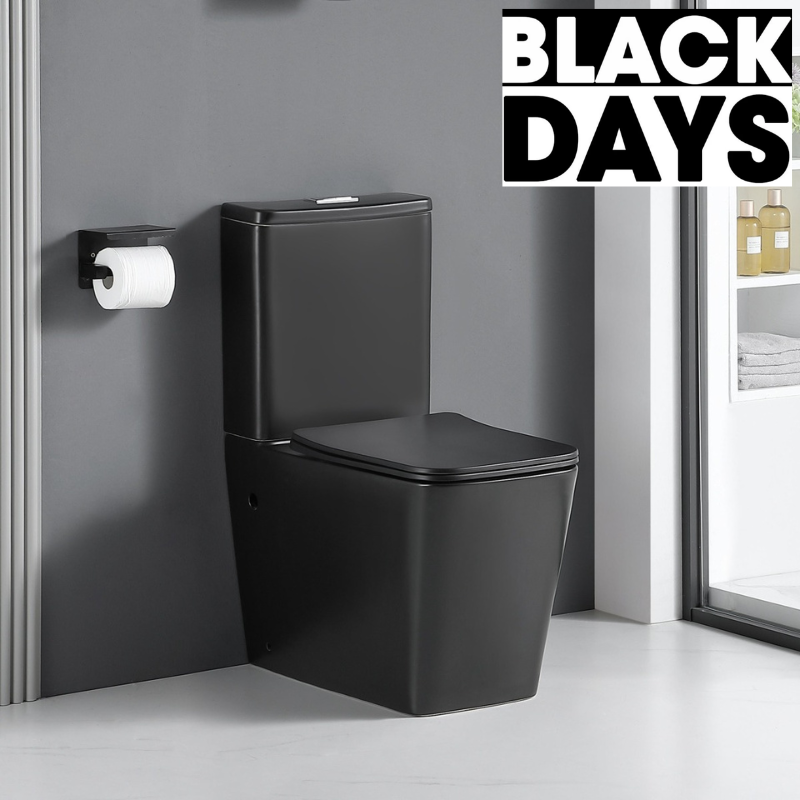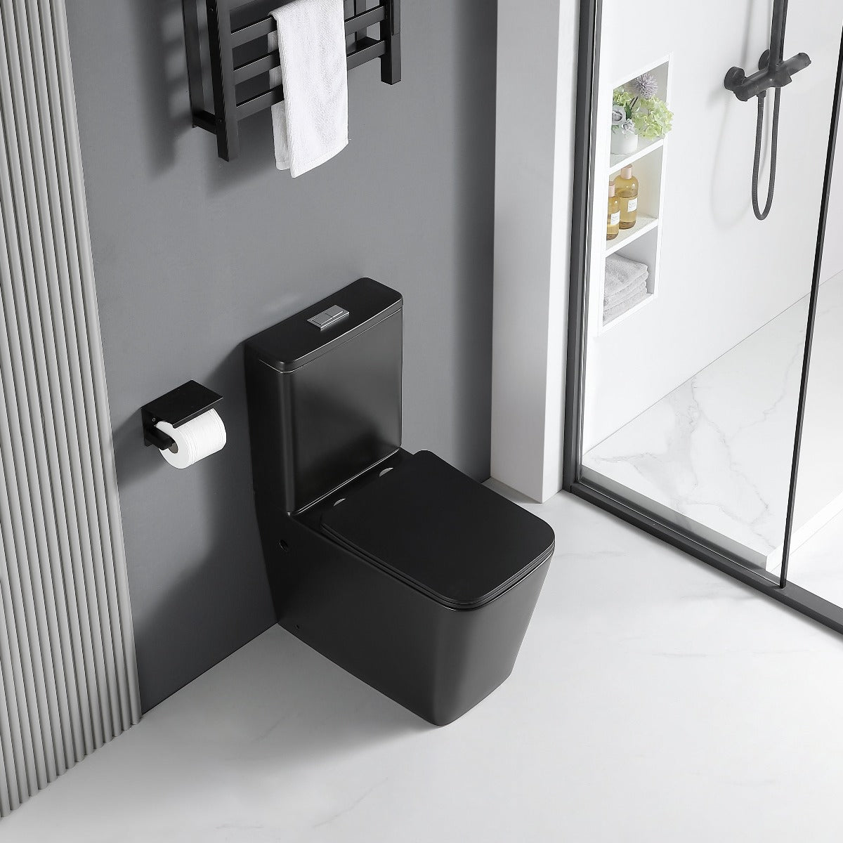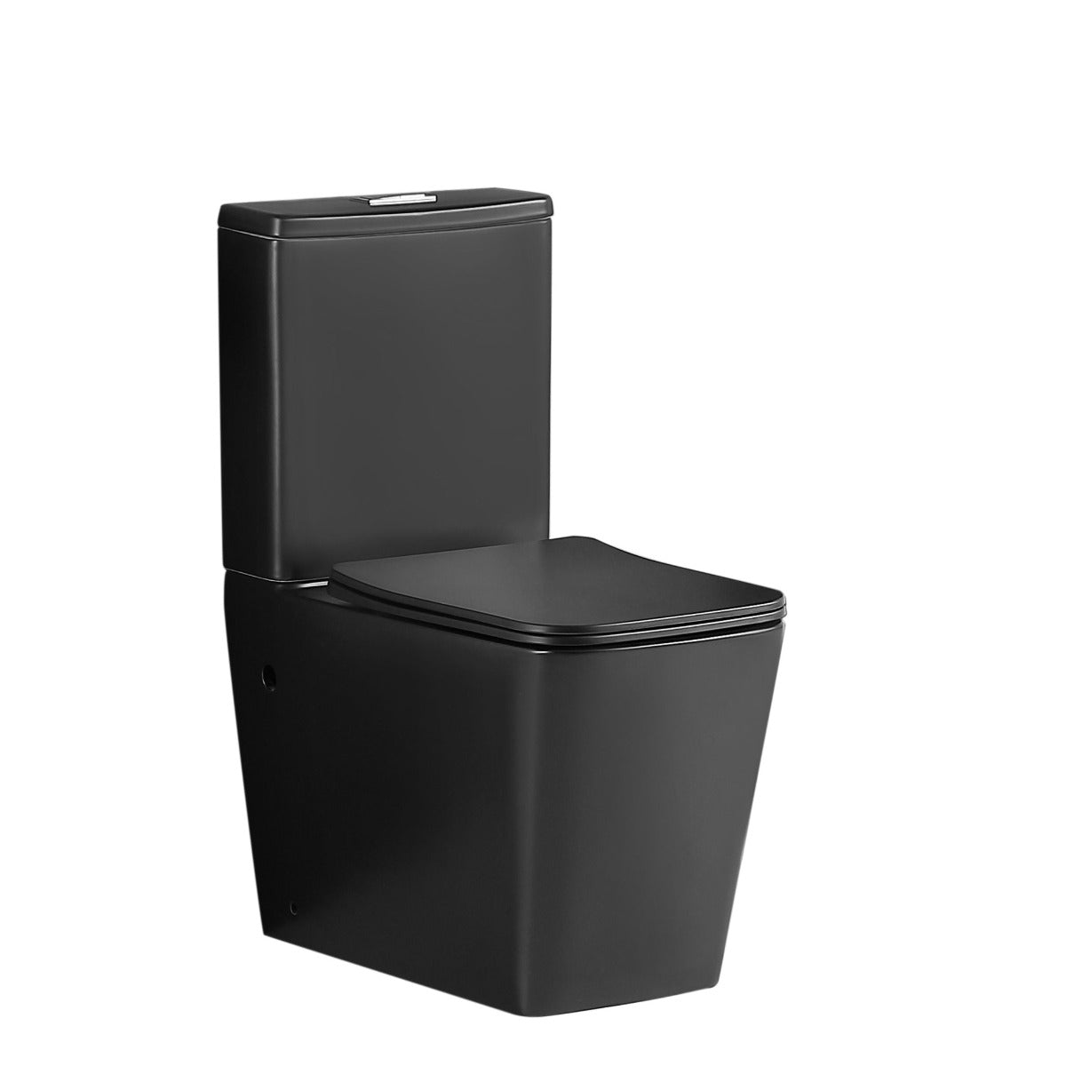 Toilette WC posé noir mat avec réservoir au design moderne et élégant.