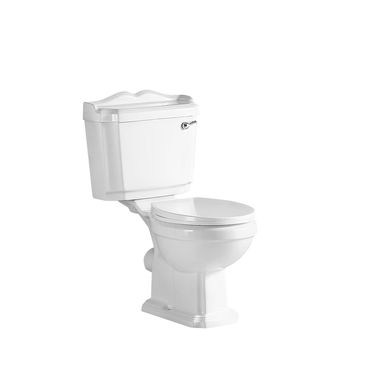 Toilette WC posé CHERY blanc brillant avec réservoir, de style rétro.