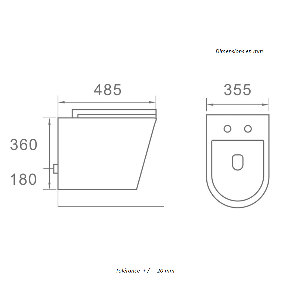 Rimless : Rend le nettoyage plus aisé, et l'utilisation plus hygiénique, sans accumulation de bactéries : sans bride (sans rebord).