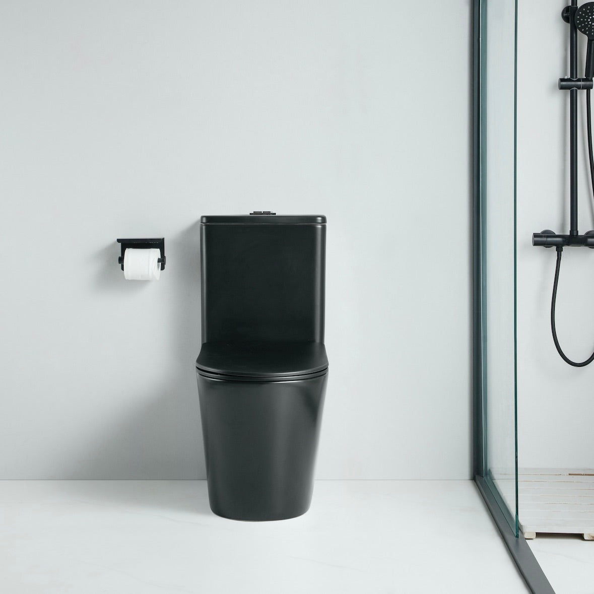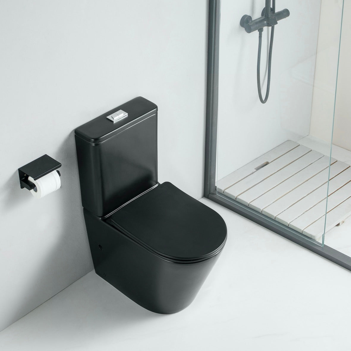 Toilette WC posé avec réservoir au design moderne et élégant, de coloris noir mat.
