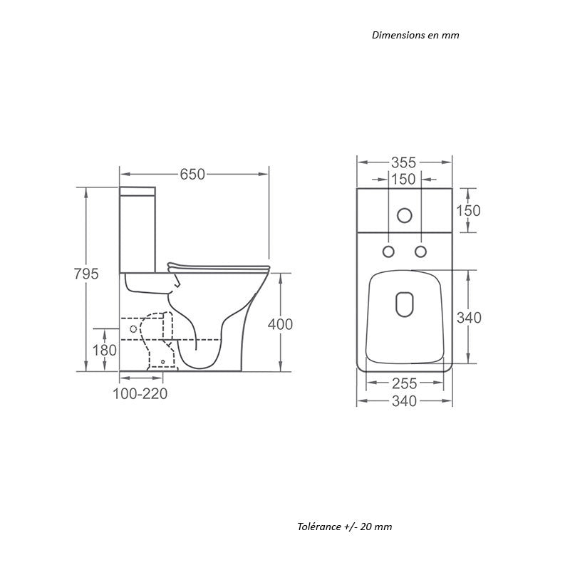 | Chasse d'eau | 3 / 6 L - Remplissage par le bas |