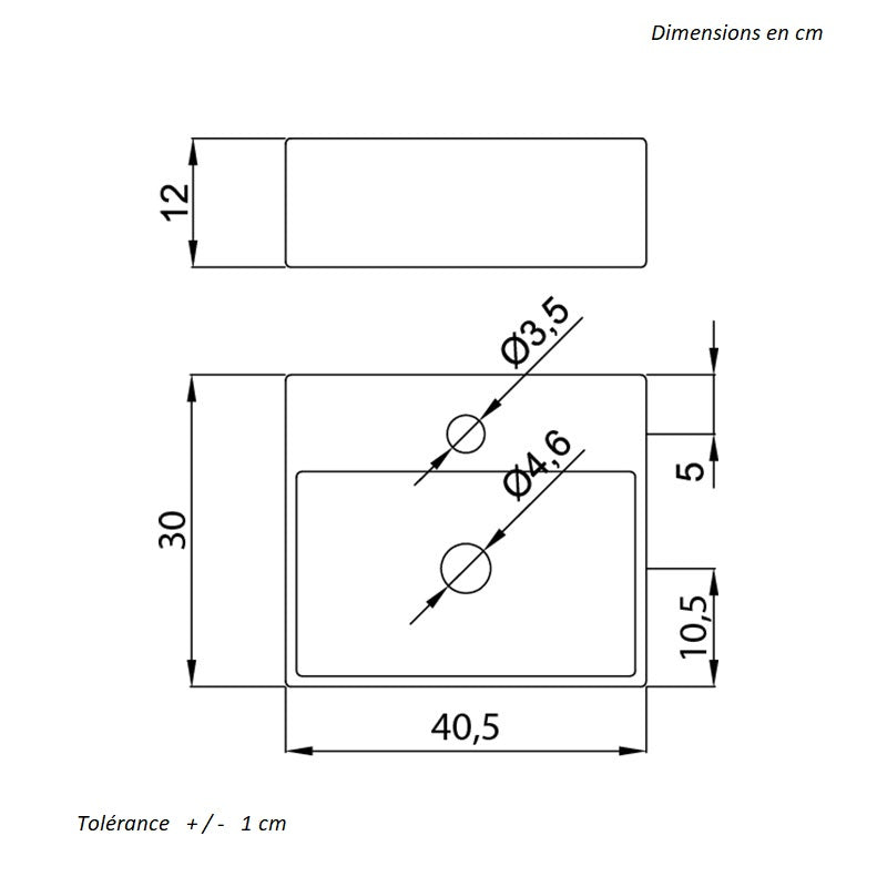 - Tolérance sur les dimensions : + ou - 1 cm.