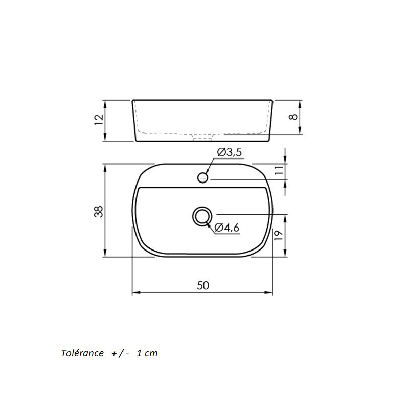 - Tolérance sur les dimensions : + ou - 1 cm.