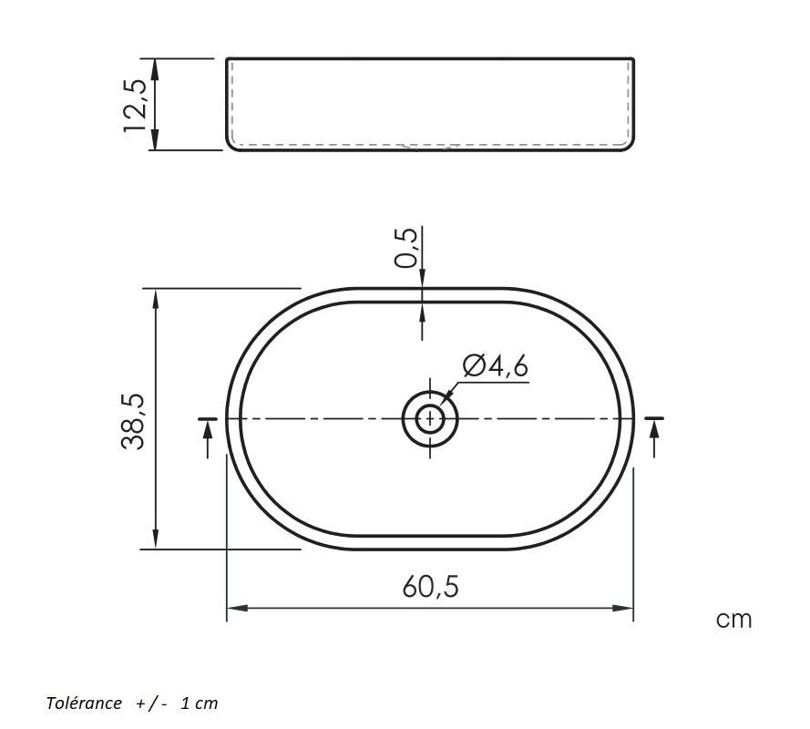 - Tolérance sur les dimensions : + ou - 1 cm.