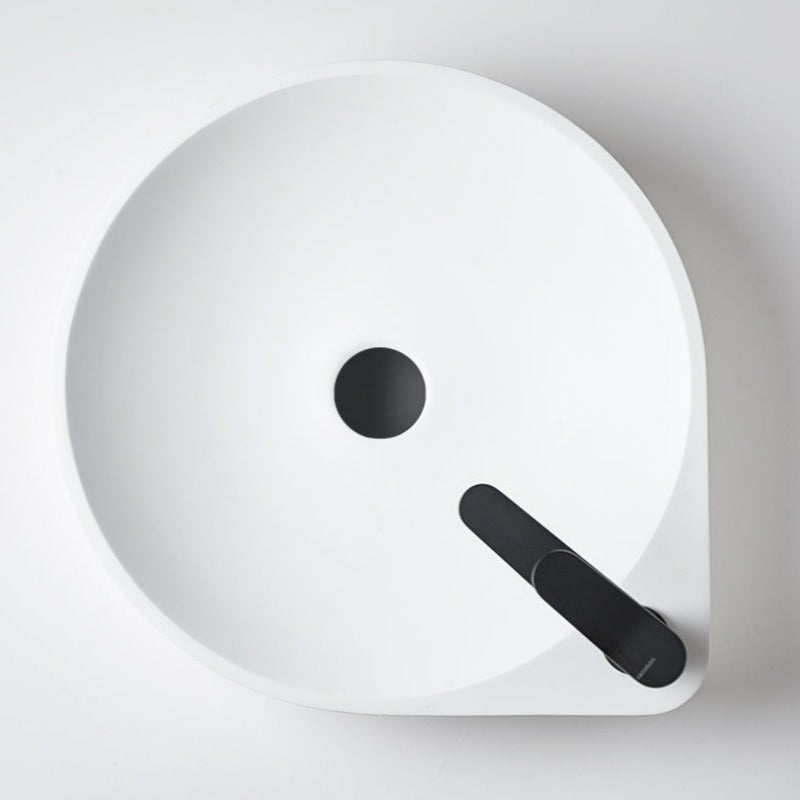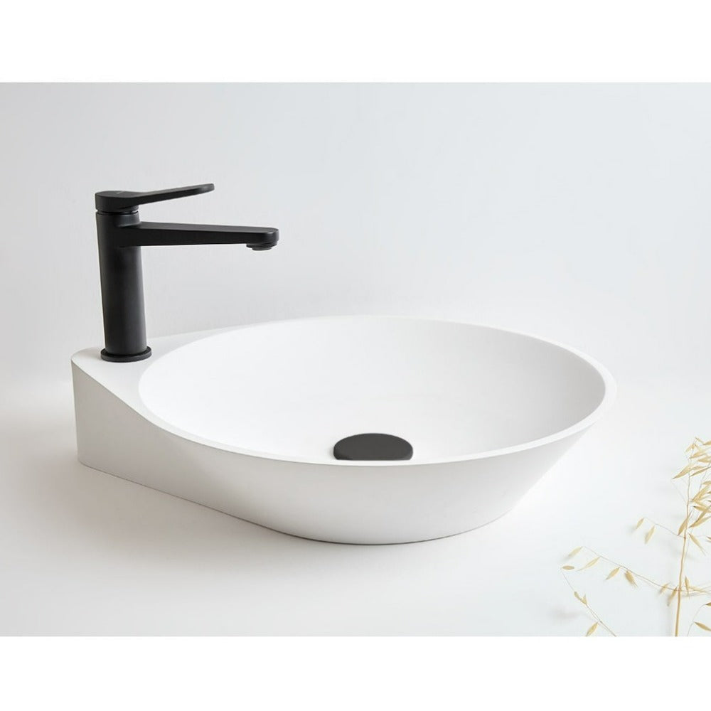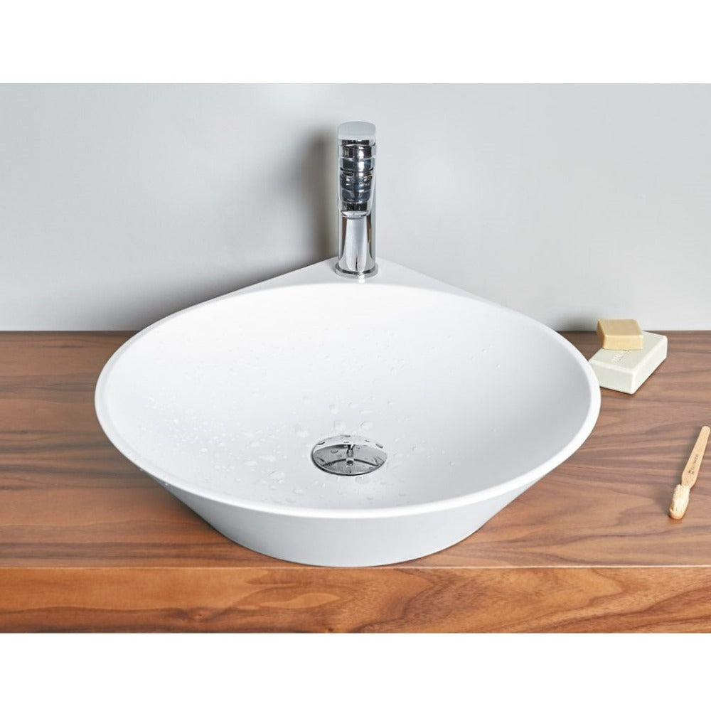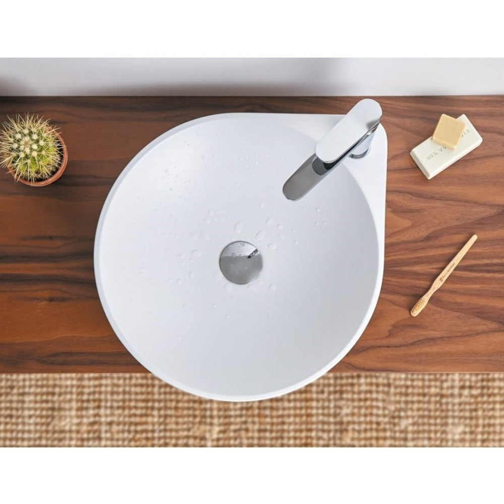 Vasque à poser en pierre de synthèse NADIR en pierre de synthèse de finition blanc mat ; dimensions 43,5 x 51 cm.