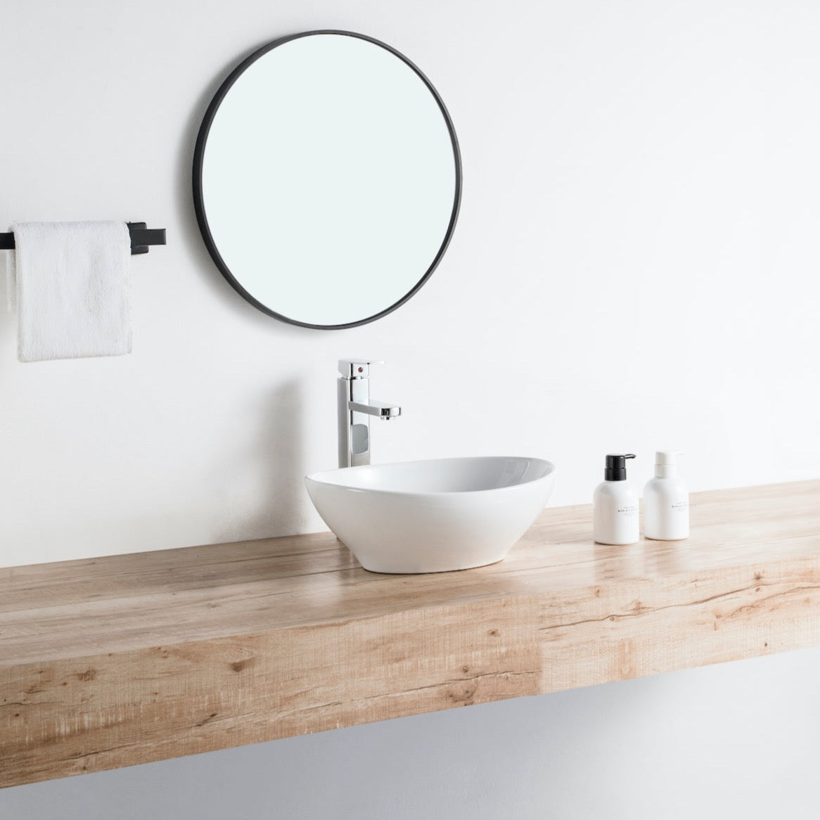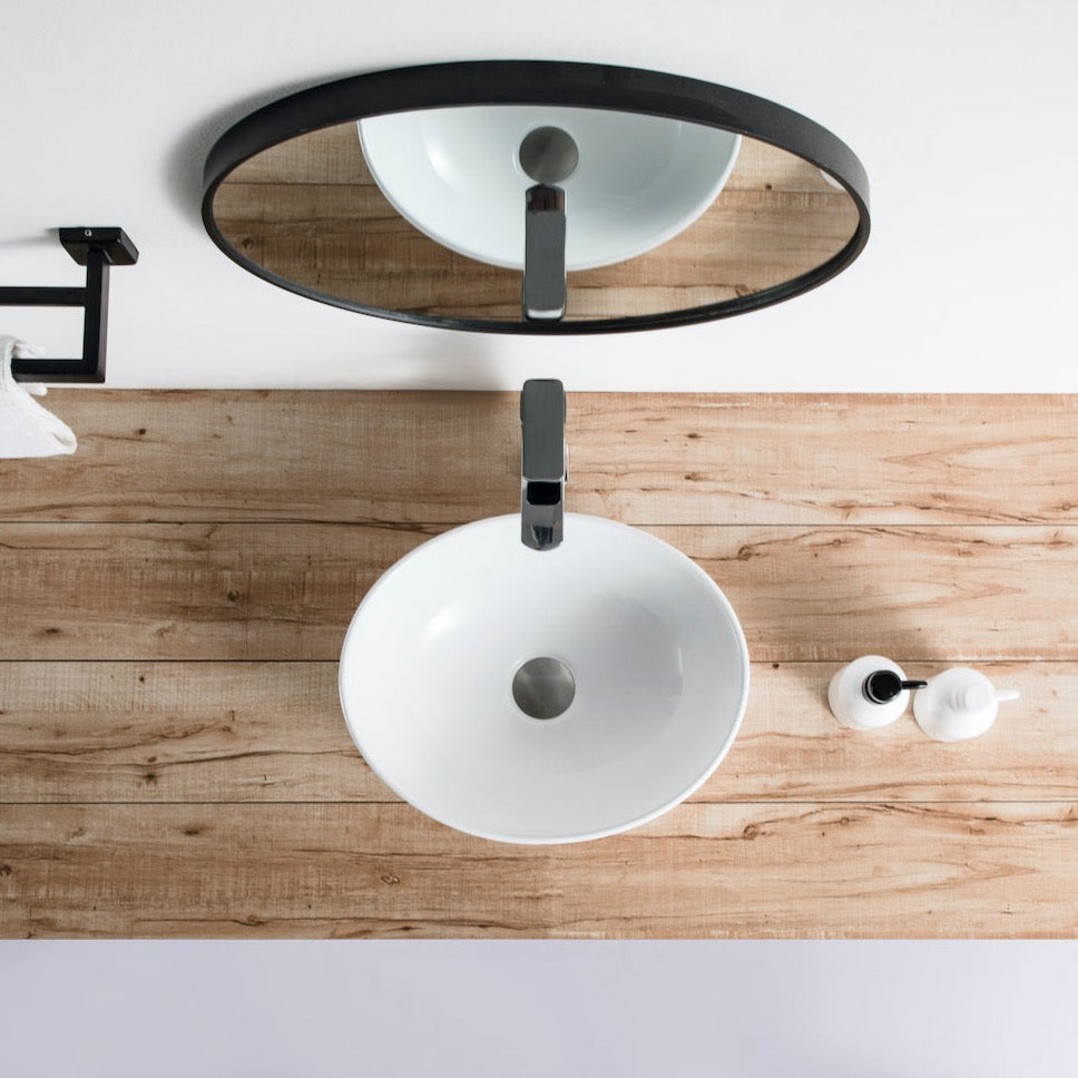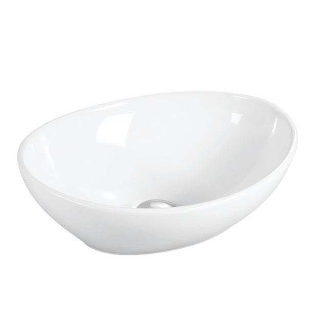 Vasque à poser de forme ovale, en céramique vitrifiée finition blanc brillant, apportant une touche contemporaine à votre salle de bain.