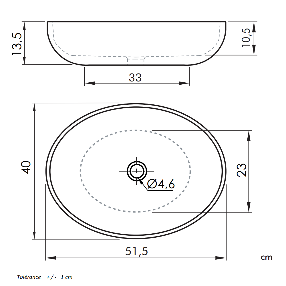 Dimensions : L. 51,5 cm x p. 40 cm x h. 13,5 cm. Tolérance + ou - 1 cm.