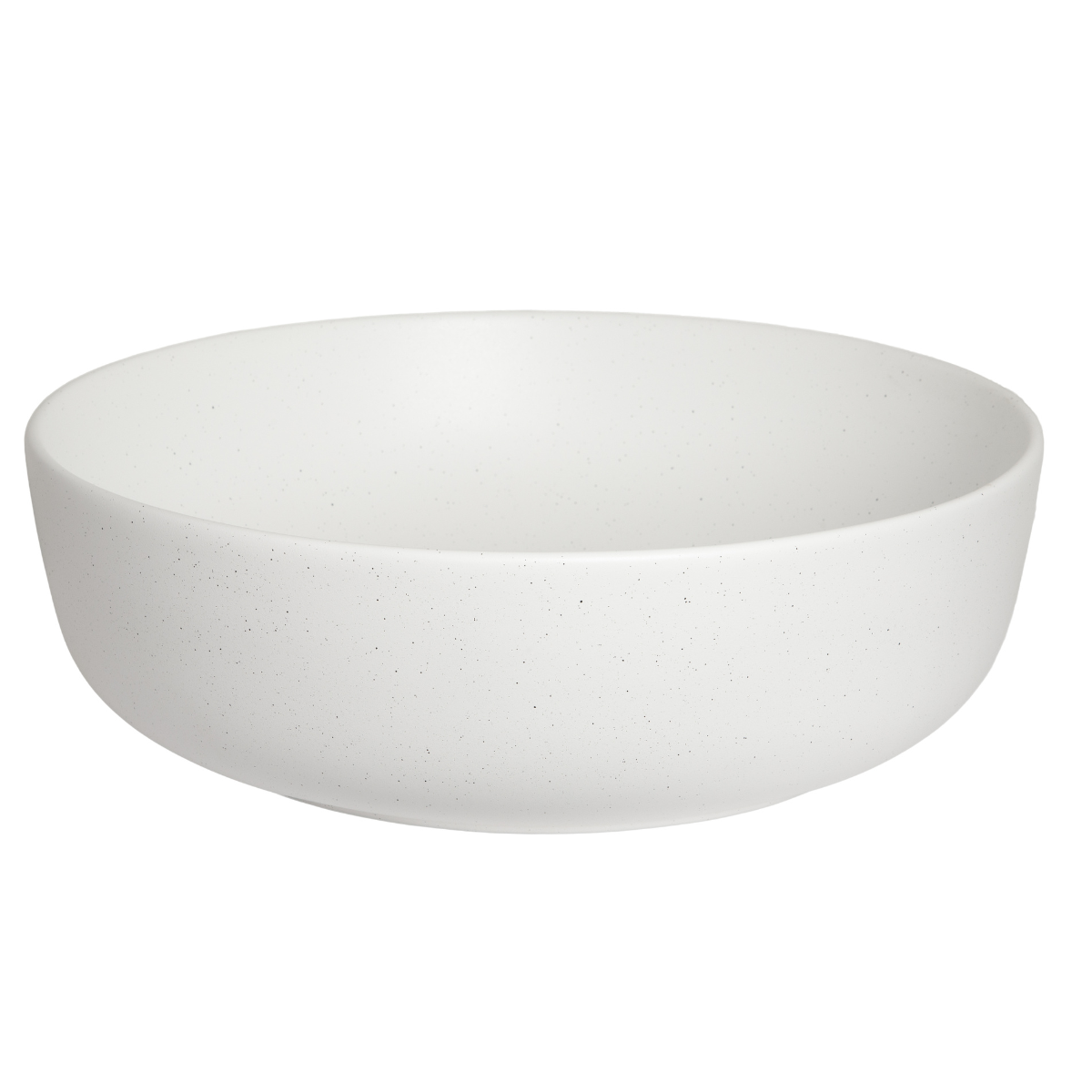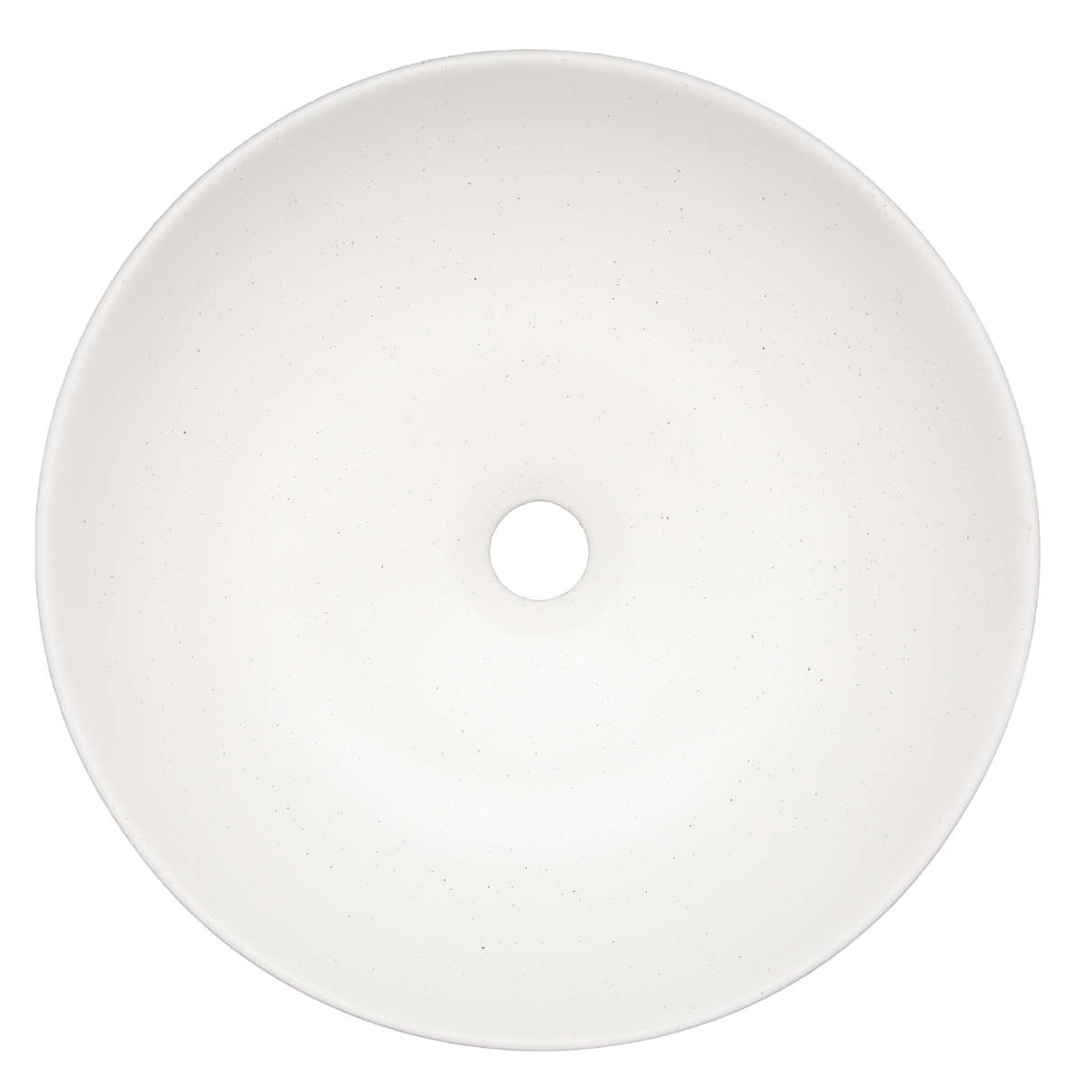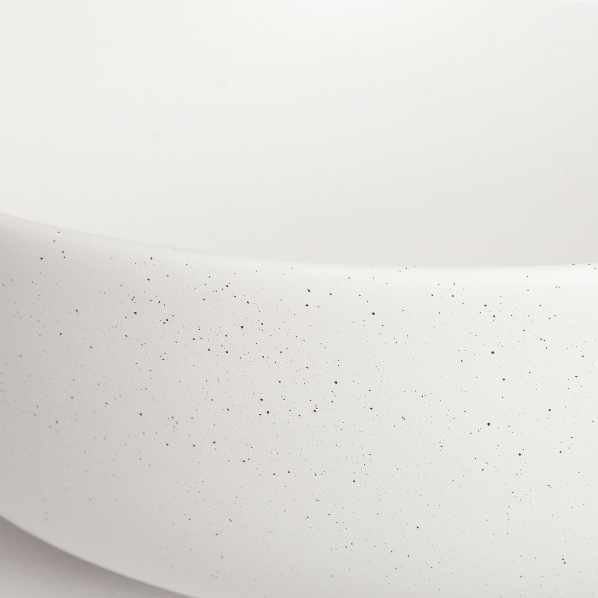 Vasque à poser de forme ronde en céramique mate. Finition blanche et noir moucheté pour un effet granit proche de la pierre naturelle, apportant une ambiance douce et authentique dans votre salle de bain.