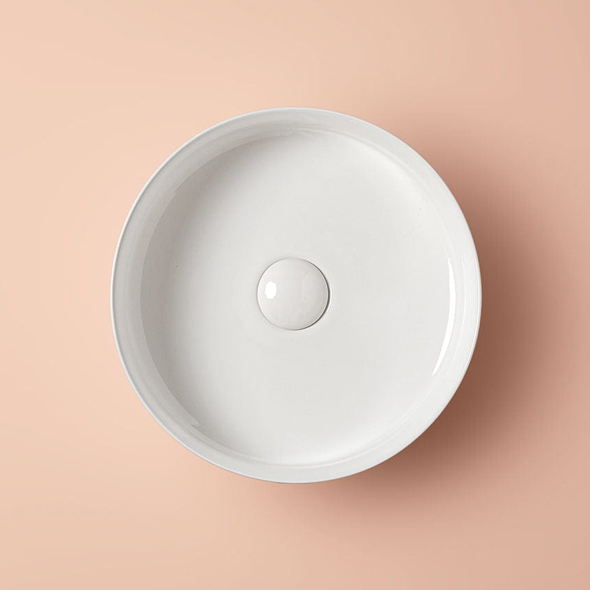 Vasque à poser MARSALA, de forme ronde, en céramique vitrifiée, finition blanc mat ou brillant.