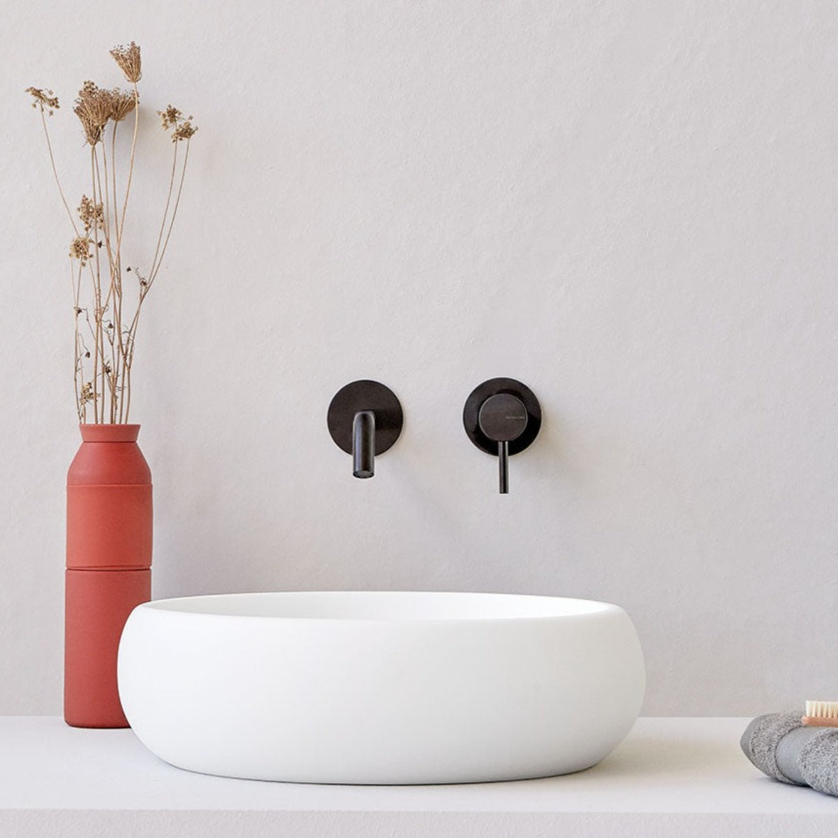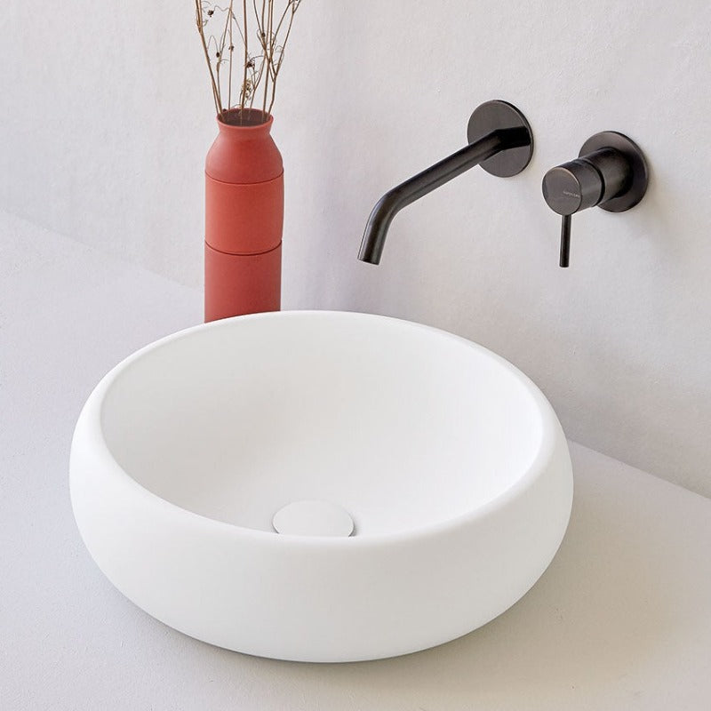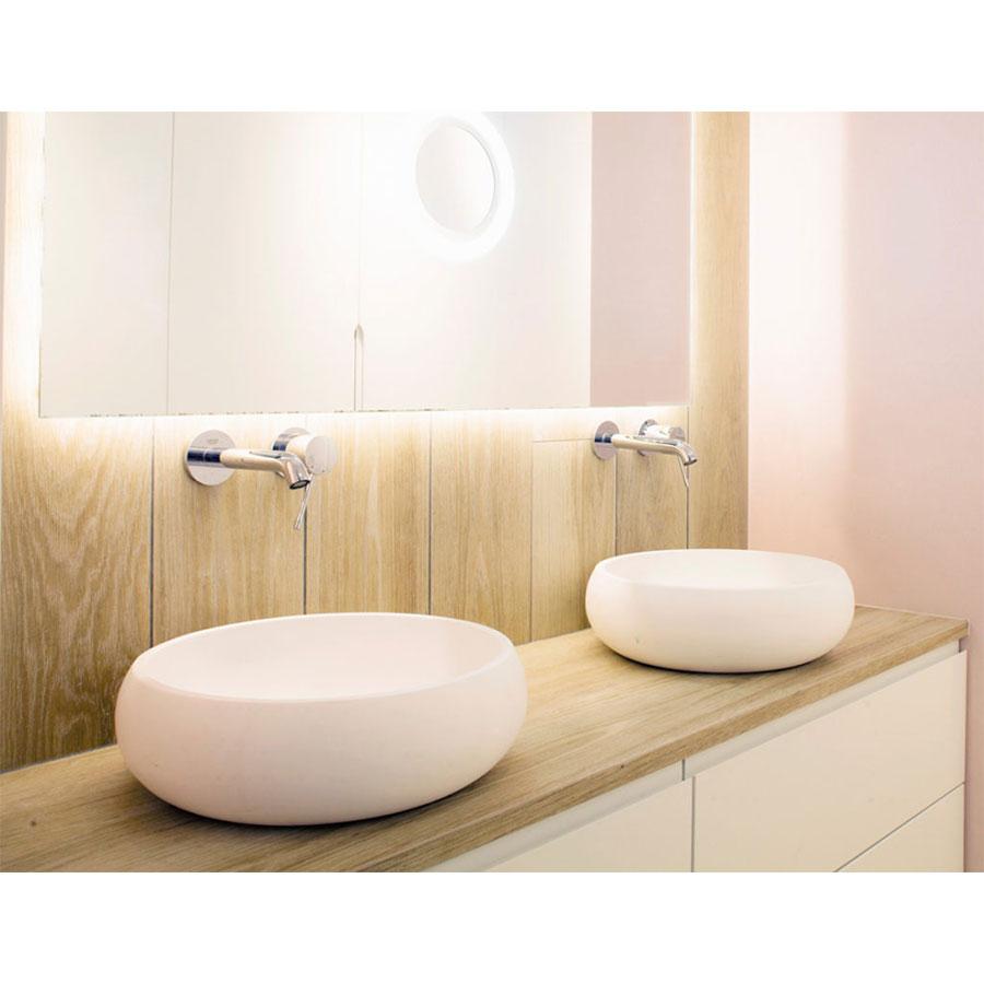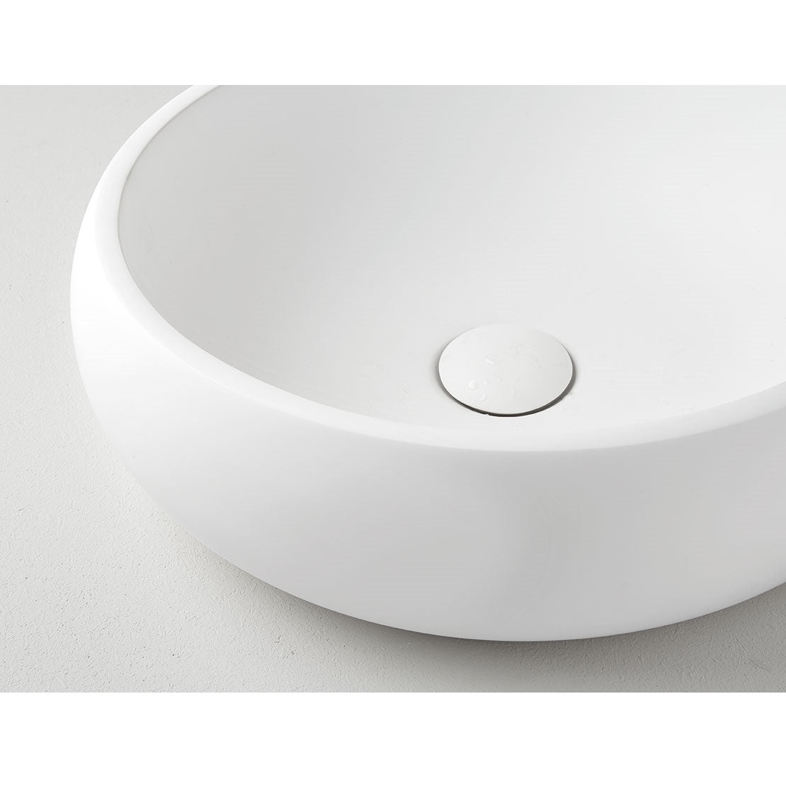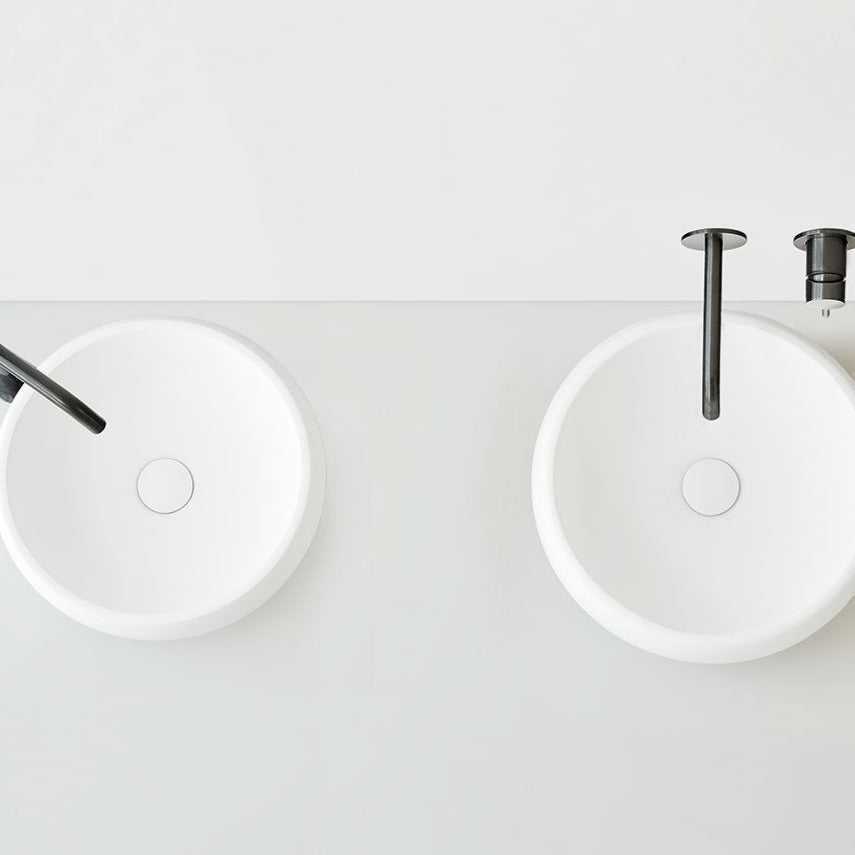Vasque à poser RONDO de forme ronde, composée d'un noyau de charges minérales et de résines vinylester.