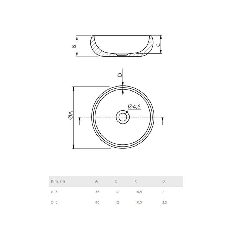 Deux dimensions au choix : Ø36 ou Ø40 cm.