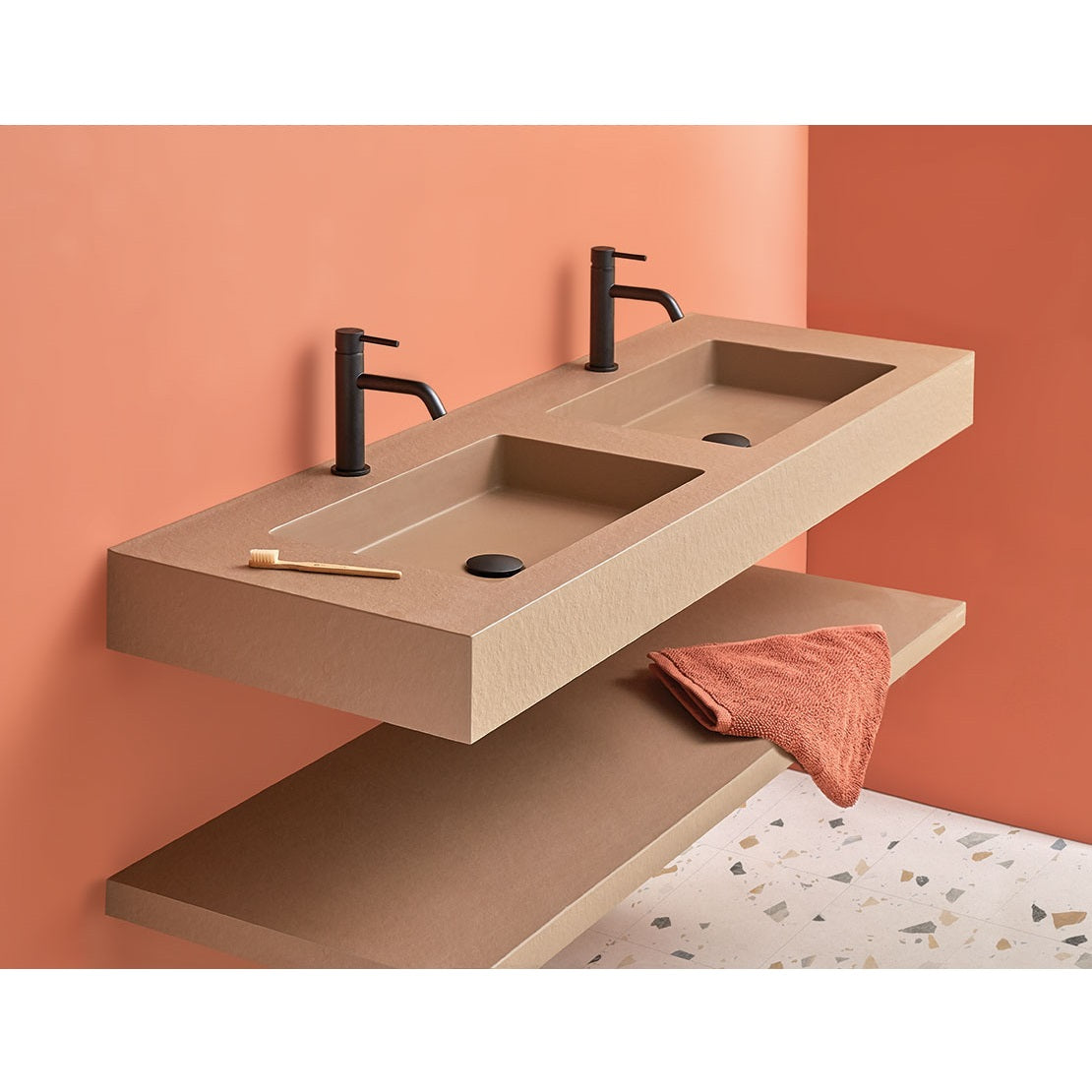 Vasque double suspendue rectangulaire CLEVER DUO, de style design avec surface ardoisée.