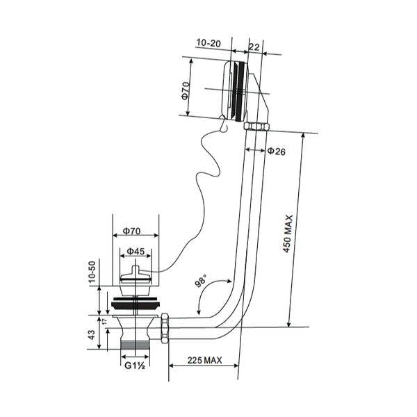 Ce vidage peut être installé avec le siphon vertical CRAWLEY noir.