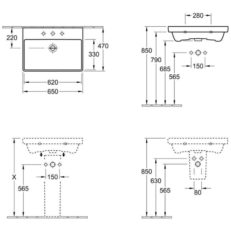 - Lavabo rectangulaire à bords arrondis et rebord étroit